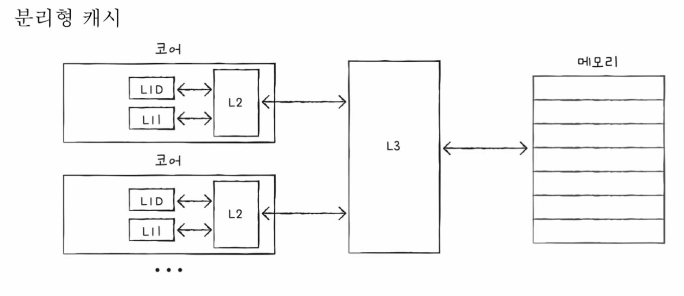 - 용량: L2 < L3 < 메모리L3: 코어 외부에 위치