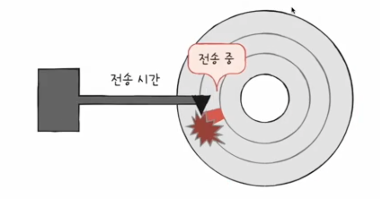 - 전송 시간 (transfer time) : 하드 디스크와 컴퓨터 간에 데이터를 전송하는 시간