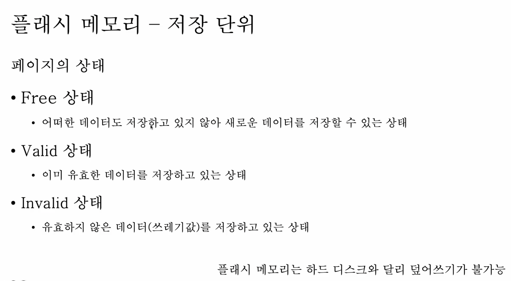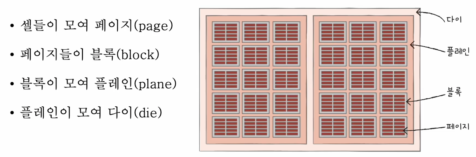 - 플래시 메모리에서 데이터를 저장하는 가장 작은 단위