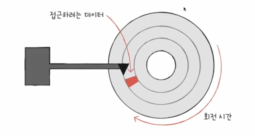- 회전 지연 (rotational latency) : 헤드가 있는 곳으로 플래터를 회전시키는 시간