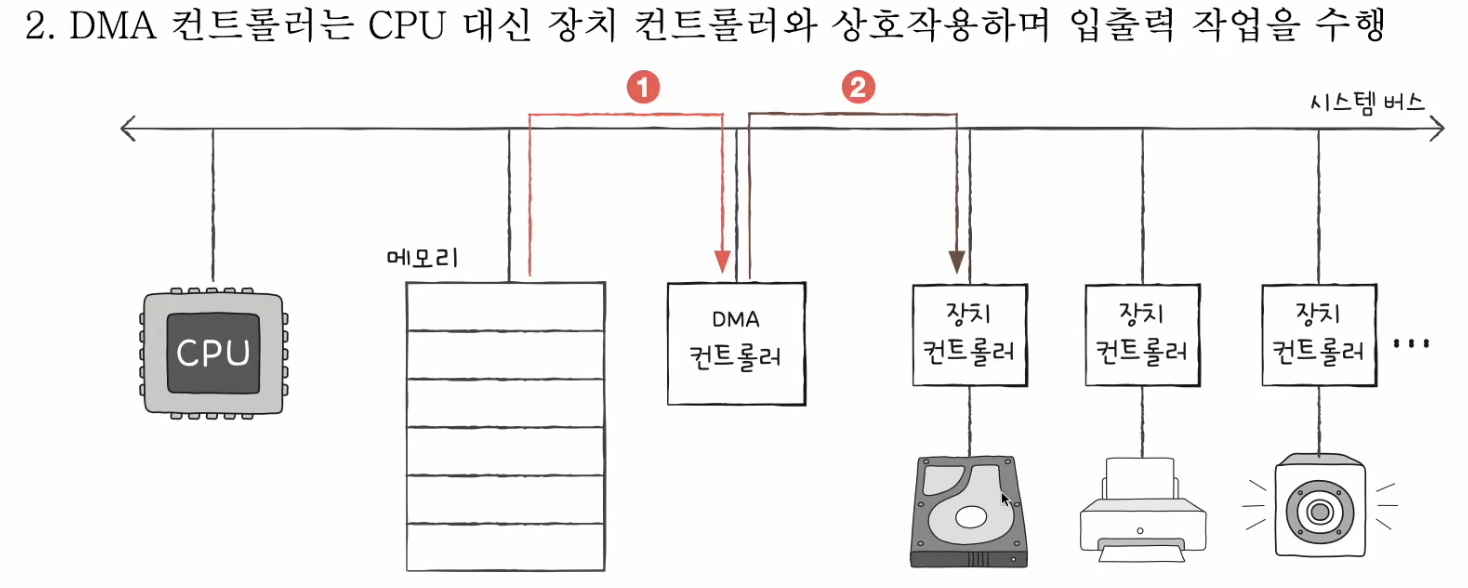 CPU가 시스템 버스를 사용할 때 DMA 컨트롤러는 시스템 버스를 사용할 수 없음.