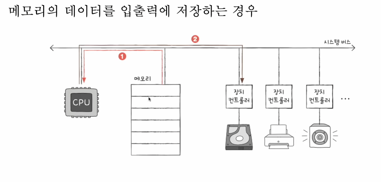 - 이동하는 데이터도 반드시 CPU를 거친다.