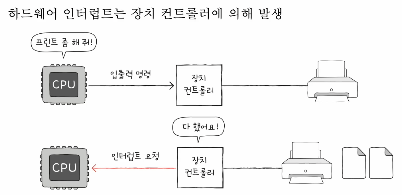 *인터럽트 요청 신호: "저 지금 끼어들어도 되나요? " 입출력장치가 보내는 알람