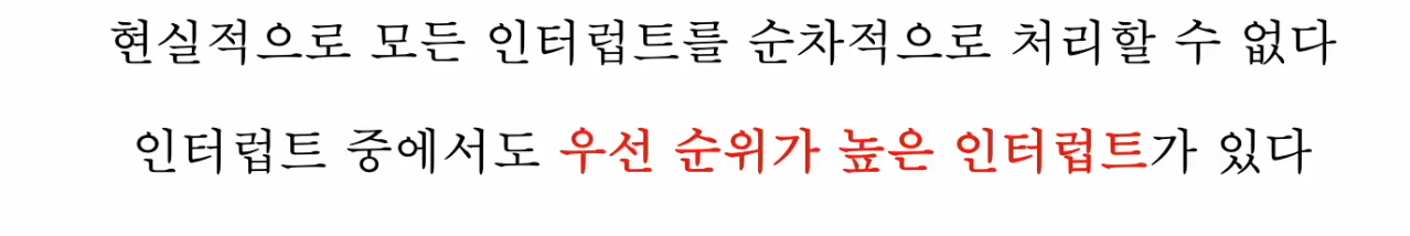 하드웨어가 고장나거나, 전원이 꺼지는 등 크리티컬한 인터럽트가 발생했을 때, 순차적이 아니라 당장 해결해야할 수도 있다.