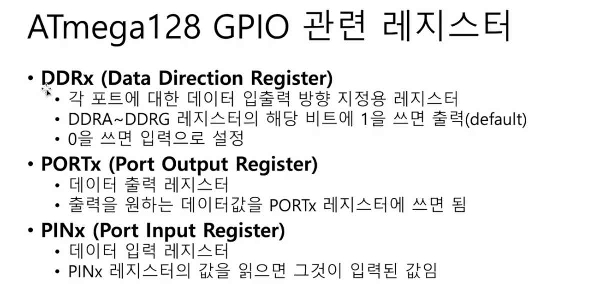 (참고) ATmega128 GPIO 레지스터 직접 조작하며 입출력해보기 본문