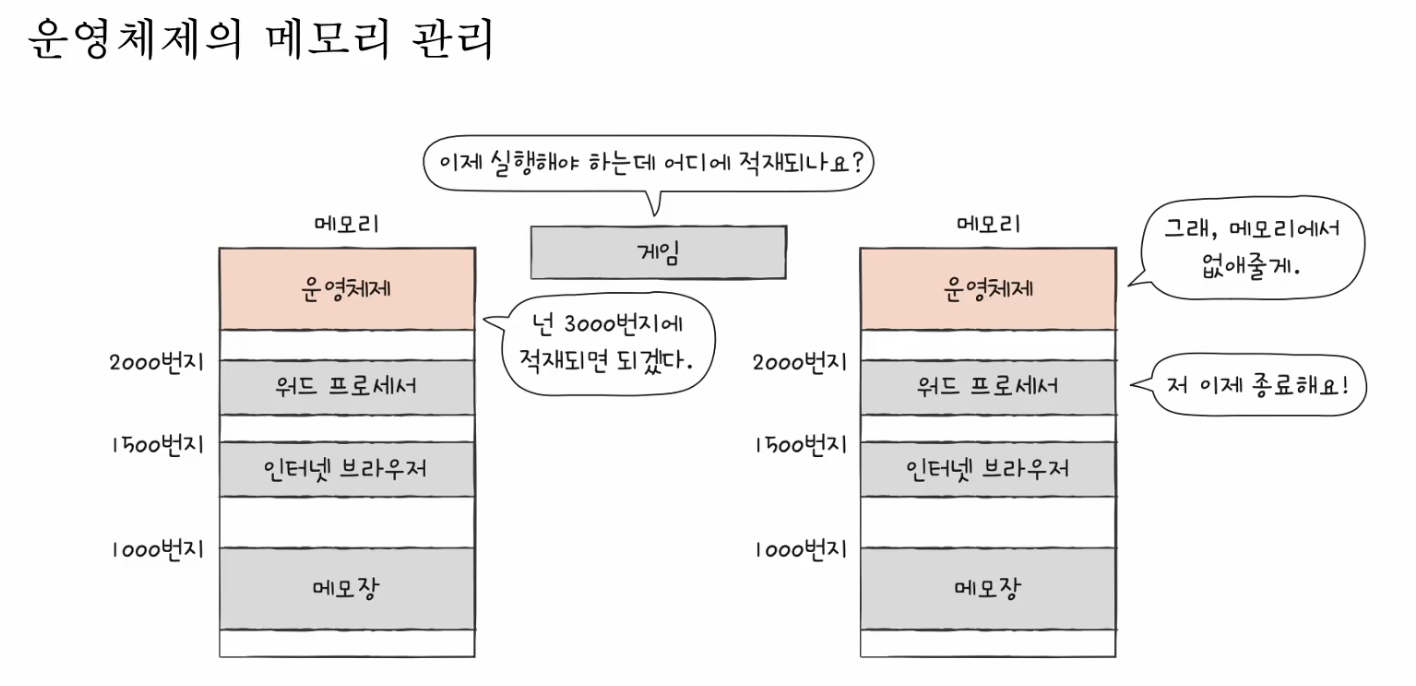 새로운 비어있는 공간 적재해 실행, 사용하지 않으면 메모리 삭제하고 비우는 역할 시행