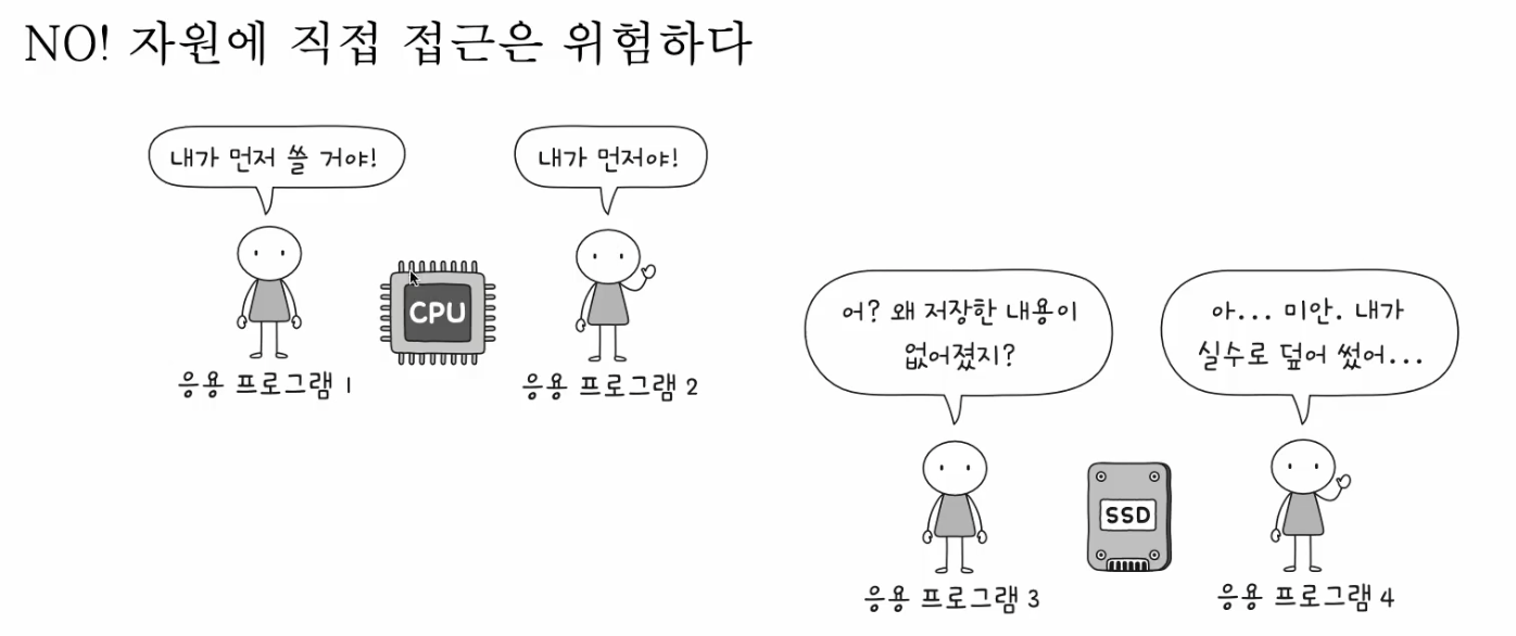 사용자가 실행하는 프로그램은 자원에 직접 접근할 수 있을까?