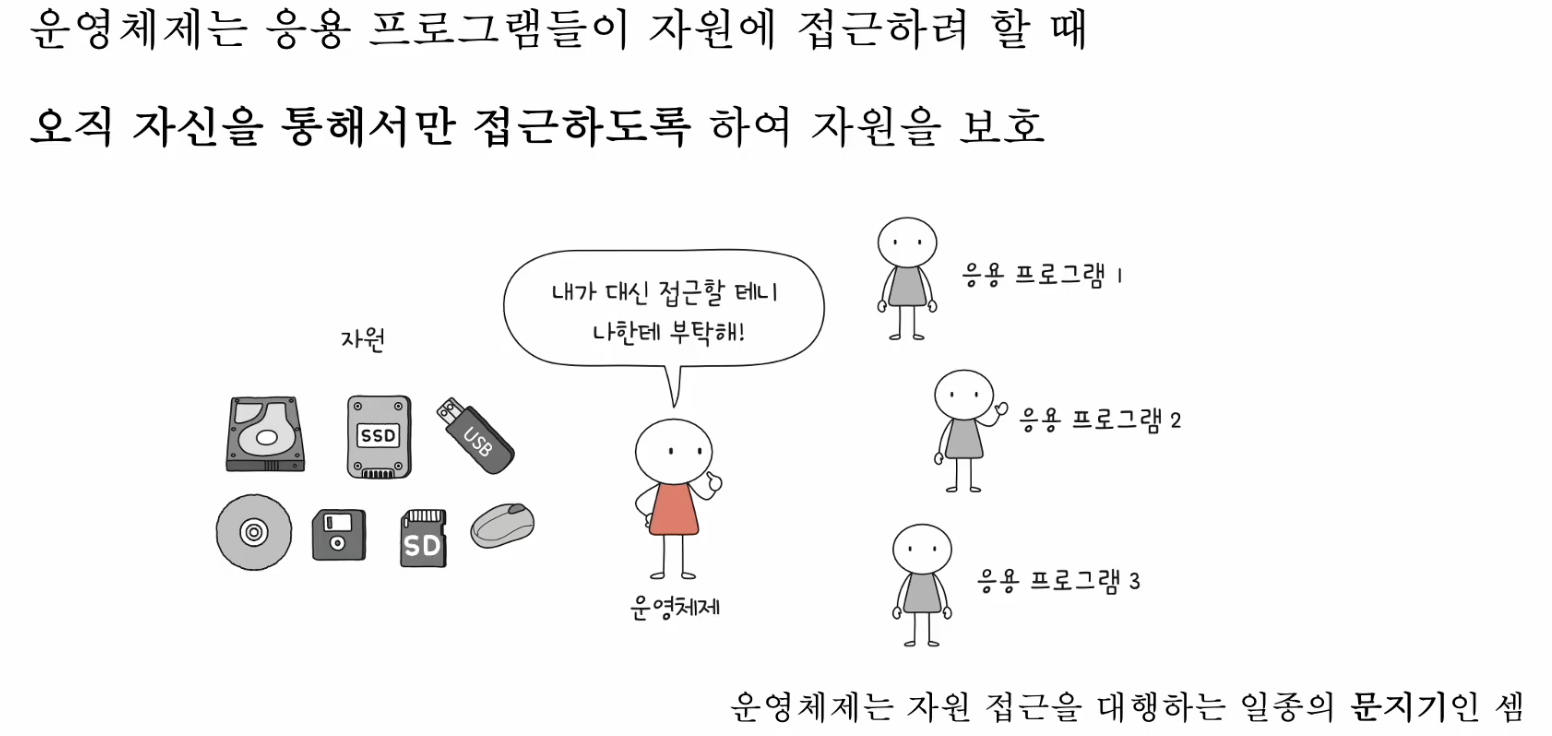운영체제는 응용 프로그램들이 자원에 접근하려 할 때