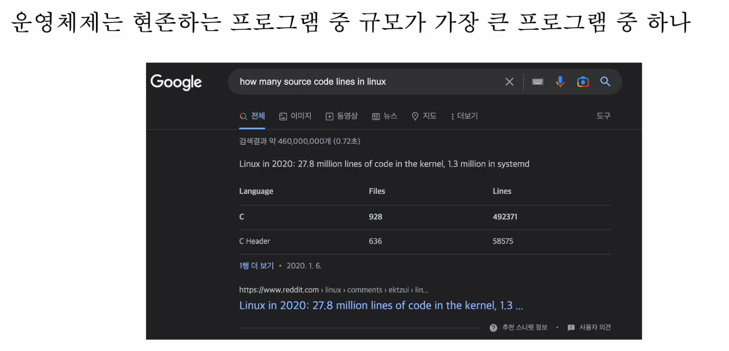 운영체제는 현존하는 프로그램 중 가장 규모가 큰 프로그램 중 하나!