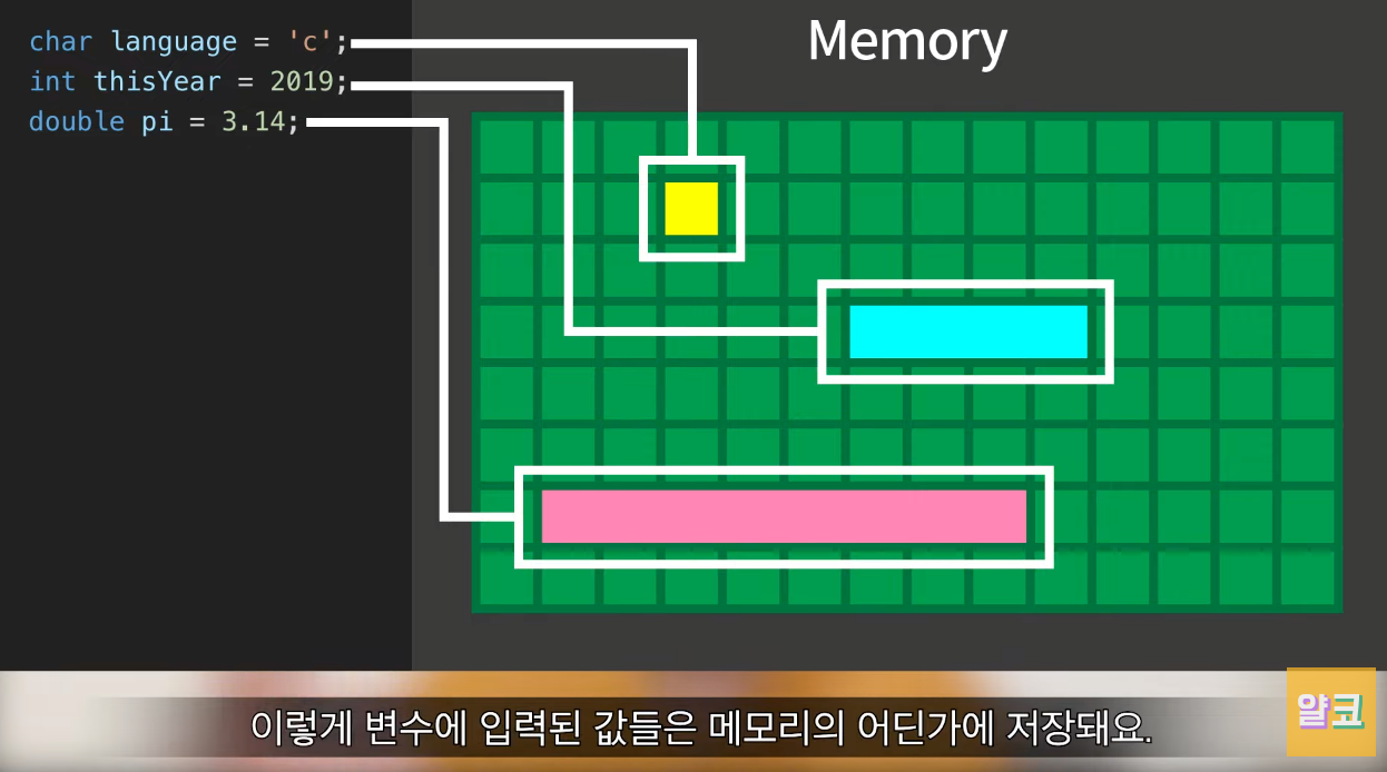 | 1 | int i | int 타입의 변수를 저장하기 위해 4 byte의 메모리 영역을 예약한다. |