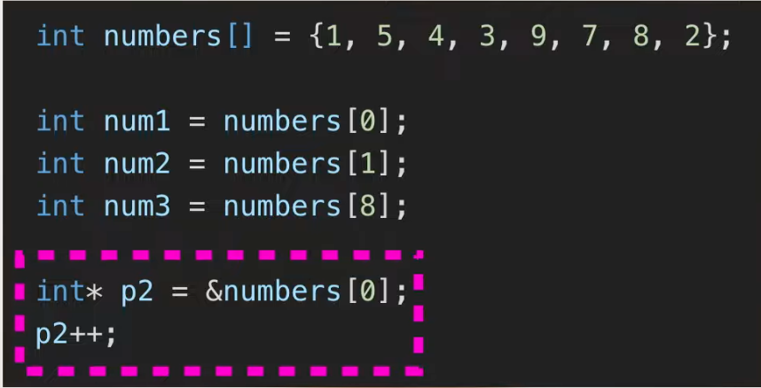 = 배열은 어차피 나란히 나열되어 있으니 배열 전체 대신, 배열의 첫번째 원소의 주소 값으로 정의