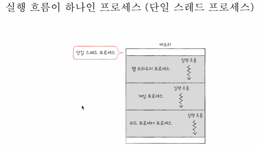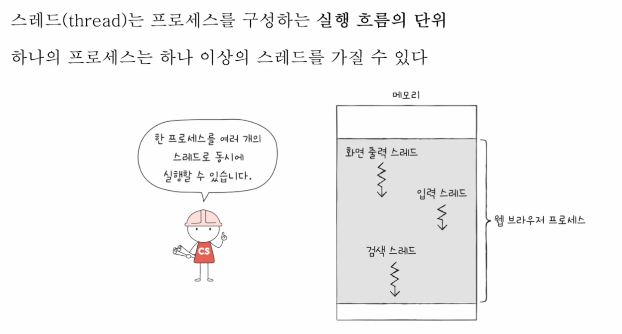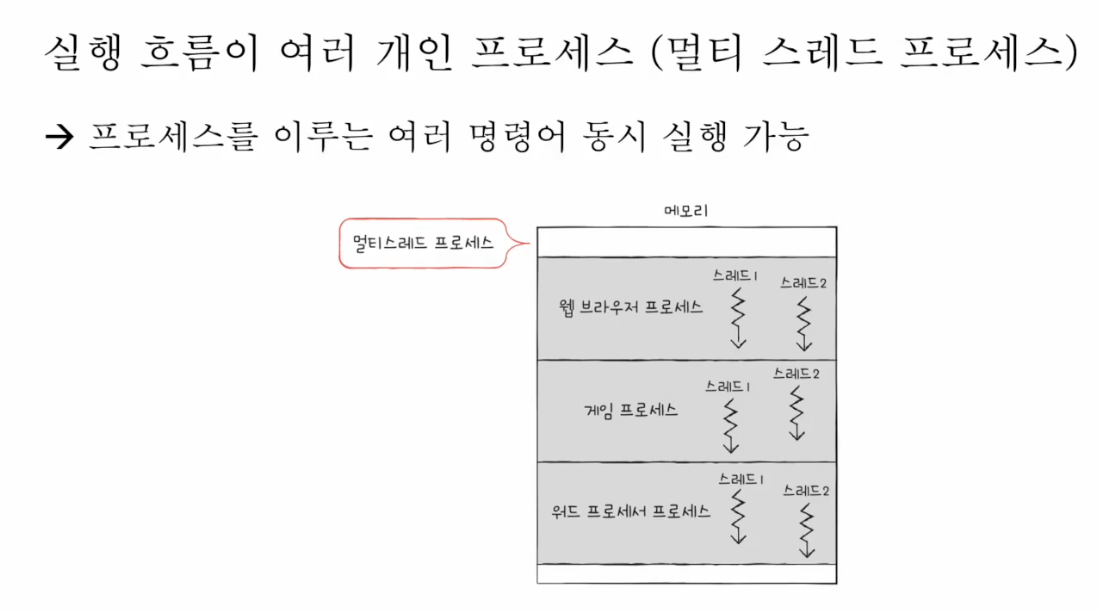 *스레드(thread) = 프로세스를 구성하는 실행 흐름의 단위