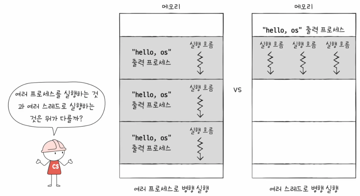 - 하나의 프로세스를 여러 스레드로 실행