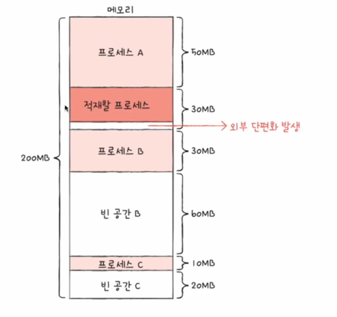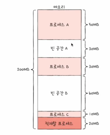- 하지만 하나의 크기가 50MB인 프로세스는 적재하지 못함