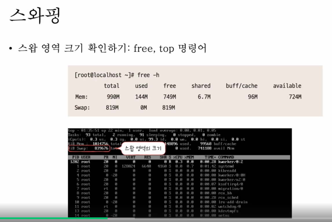 - swap out: 메모리에서 스왑영역으로 쫓아내는 것