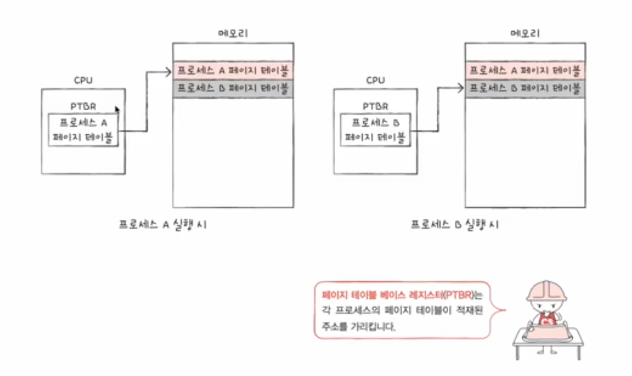 각 페이지 테이블은 CPU 내의 프로세스 테이블 베이스 레지스터(PTBR)가 가리킨다.