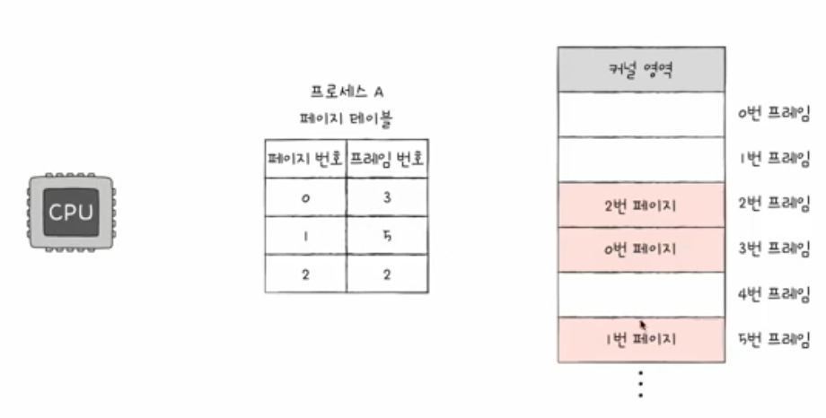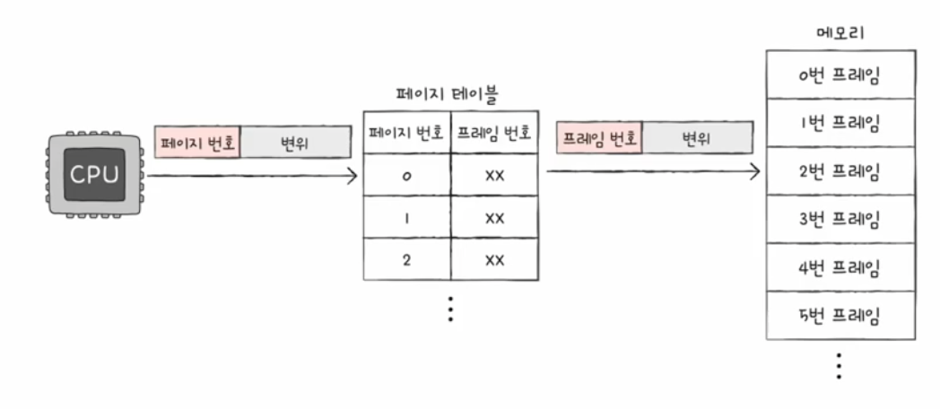 - 프로세스를 이루는 페이지가 어느 프레임에 적재되어 있는지 CPU가 일일이 알기는 어렵다.
