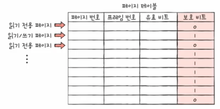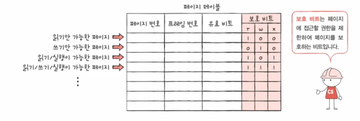 - 페이지에 접근할 권한을 제어해서 페이지를 보호하는 비트
