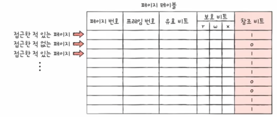 - CPU가 참조한 적이 한번이라도 있으면 1, 없으면 0