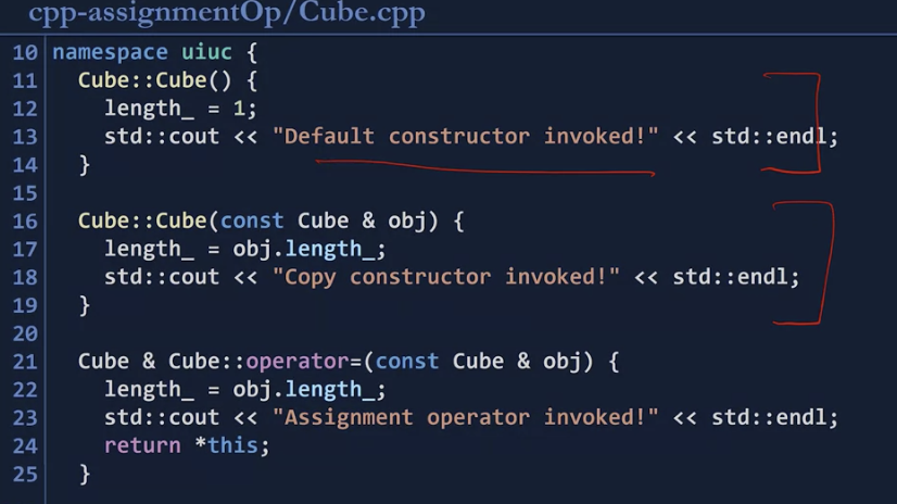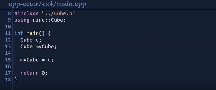 | 2 | myCube = c; 여기는 copy Constructor가 호출될 것으로 예상되지만 이미 다른 default constructor로 생성된 상태로 copy Constructor가 호출되지 않는다. |