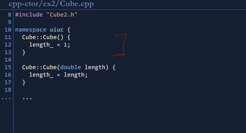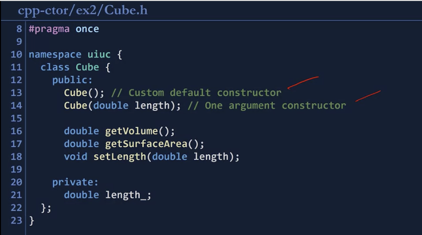 Cube::Cube(double length) // one-argument ctor specifying initial length