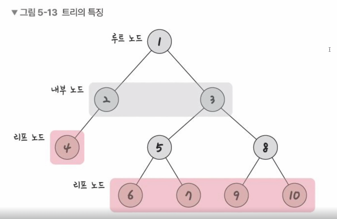 - 내부 노드 : 루트노드와 리프 노드 사이에 있는 노드