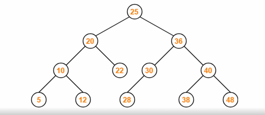 10을 찾으려고 한다면 25의 왼쪽 노드들만 찾으면되기 떄문에 전체 탐색을 하지 않아도 된다.