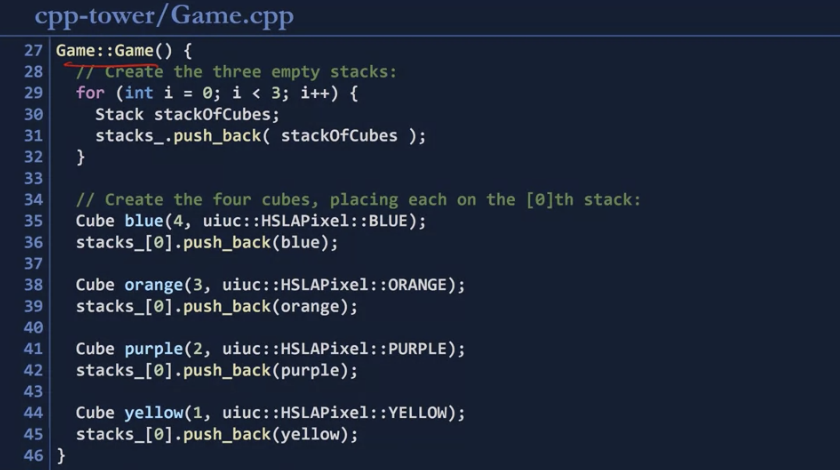 A new class must be created to represent each of the stacks in the Tower of Hanoi game: