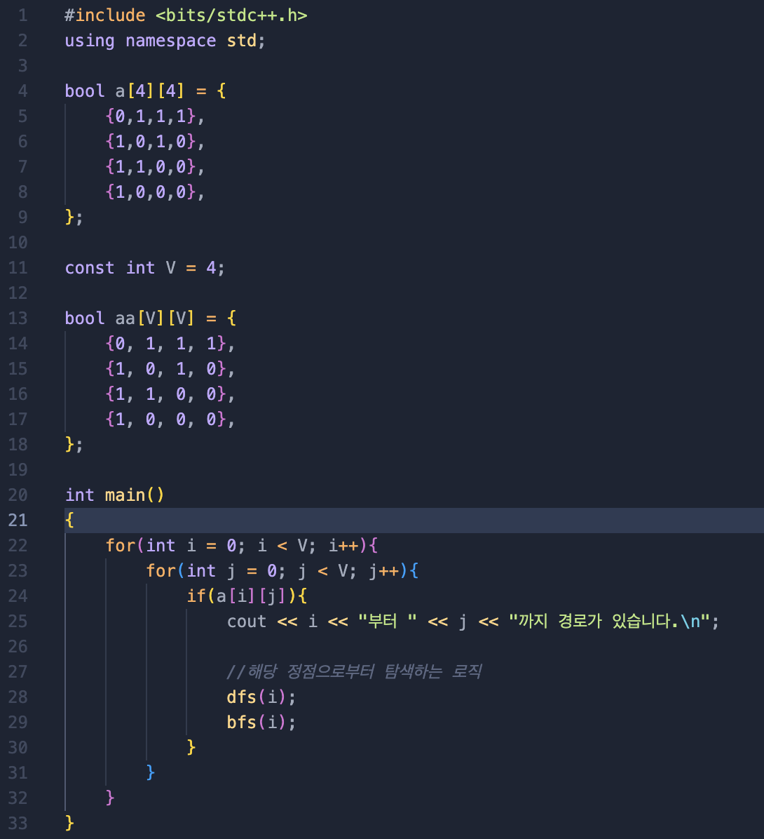 bool a[V][V], visited[V];