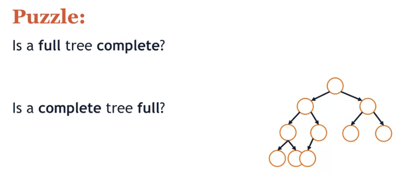 - Binary Trees have a height and a definition for being full, perfect, and complete.