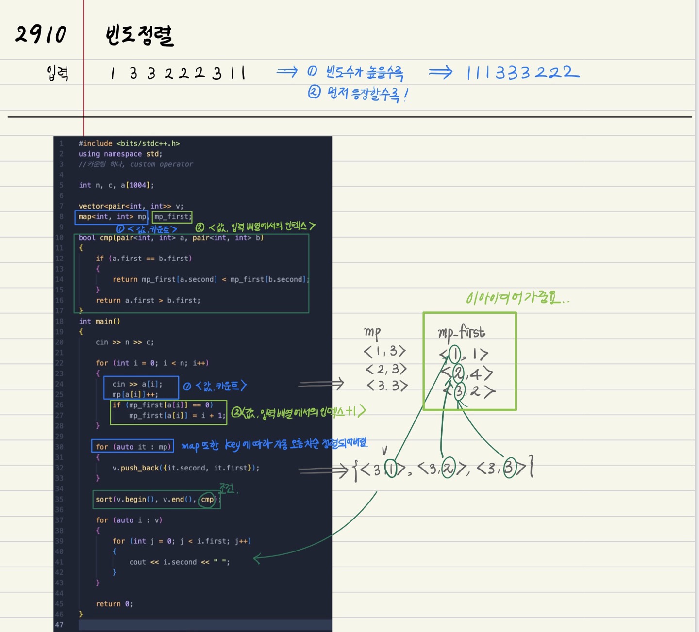 2910 : 빈도 정렬 - map, 카운팅, 정렬 본문