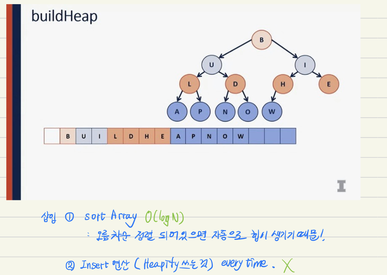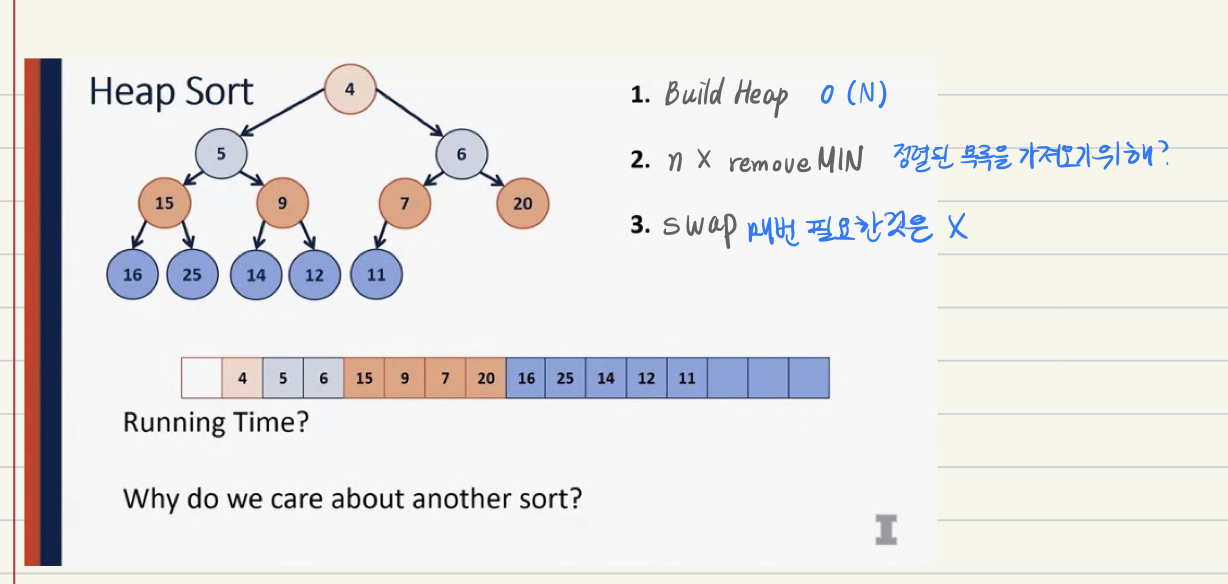 - we can build a heap in O of N time, in linear time, which is a fantastic result