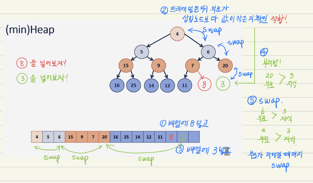 그래서 트리의 아이디어를 가져오되, 노드가 우선순위를 가지고 있는 우선순위 큐를 활용한 힙을 만들어 볼 것