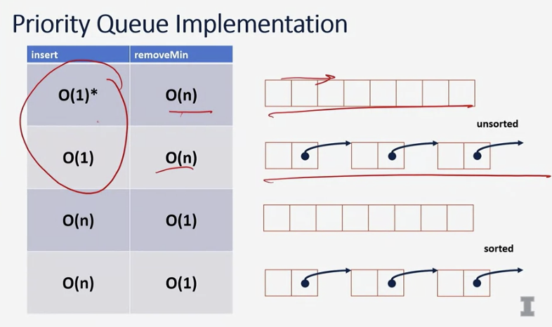 제거 연산을 하는 데 걸리는 시간복잡도를 고려하면, 배열이나 리스트는 O(n)이라 굉장히 비효율적.