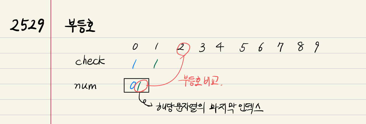 두 종류의 부등호 기호 ‘<’와 ‘>’가 k개 나열된 순서열 A가 있다. 우리는 이 부등호 기호 앞뒤에 서로 다른 한 자릿수 숫자를 넣어서 모든 부등호 관계를 만족시키려고 한다. 예를 들어, 제시