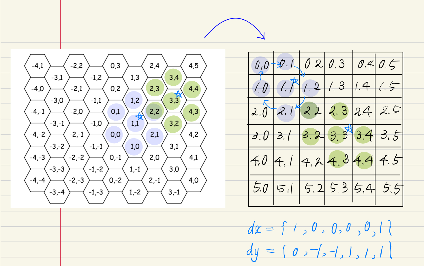 int[] dxOdd = { 1, 1, 1, 0, -1, 0 };