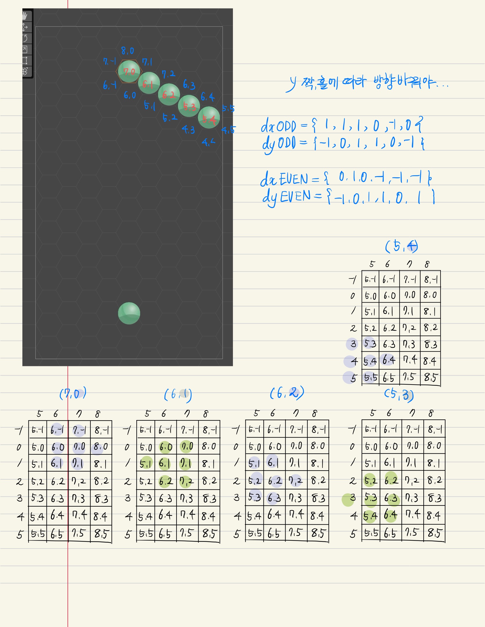 hexagrid의 좌표 설정 방식에 대해 좀 더 파고들어 공부해보면 좋겠다만 우선은 발견한 패턴에 따라 코드를 수정해주겠다.