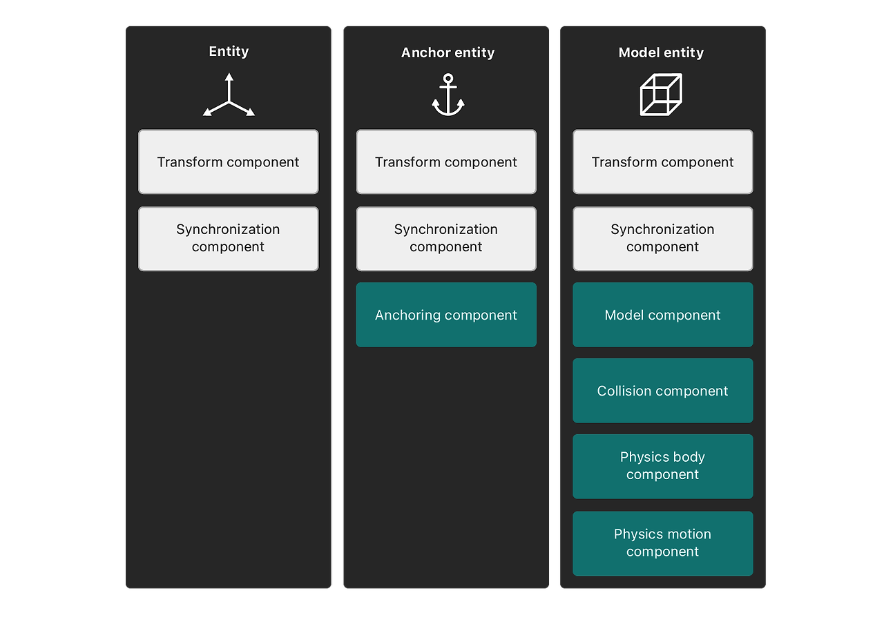 RealityKit은 3D 씬에 entity를 추가하는 방식으로 구성되어 있다.