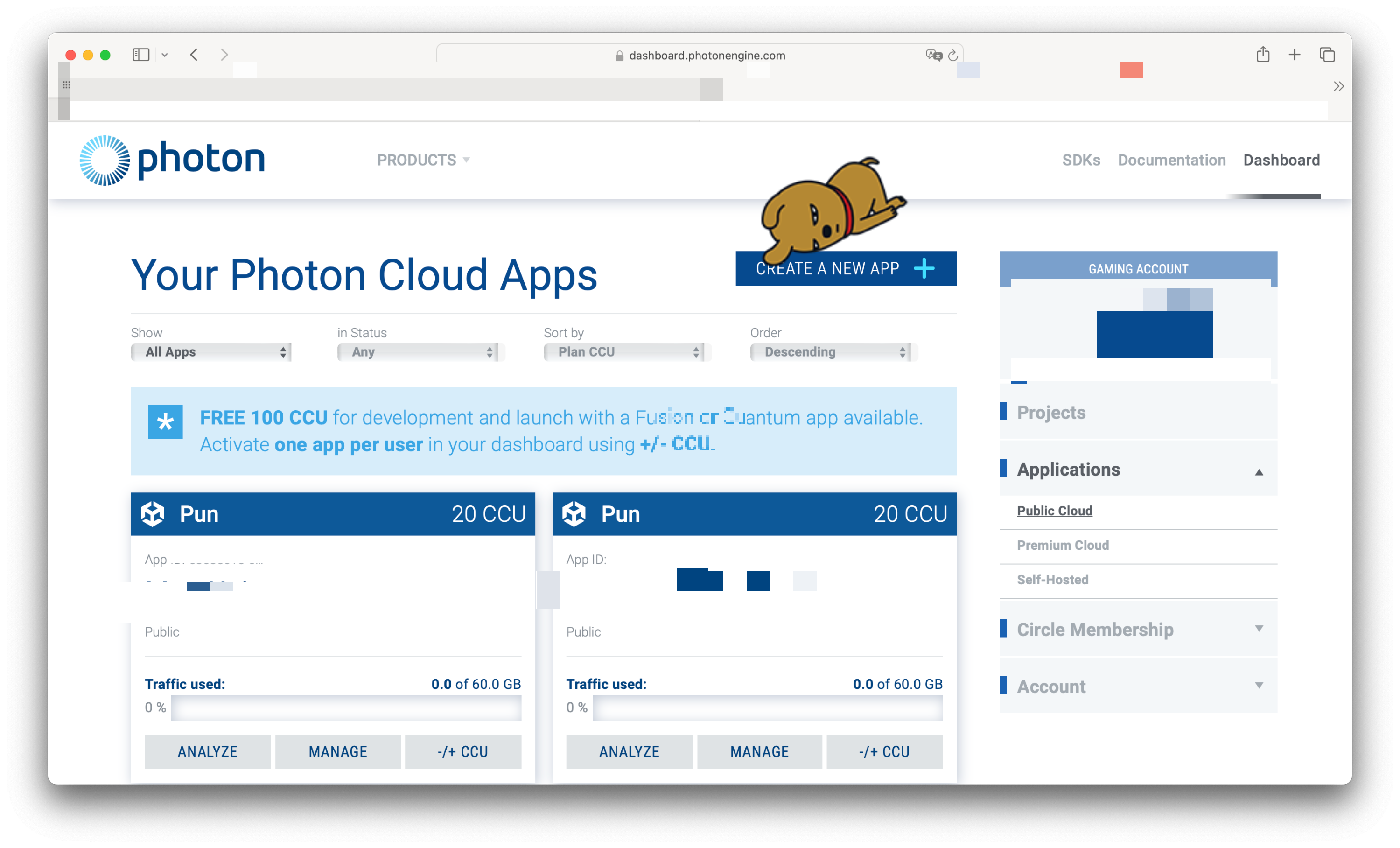 1. photon 회원가입 후 create new App - 종류 Pun으로 생성