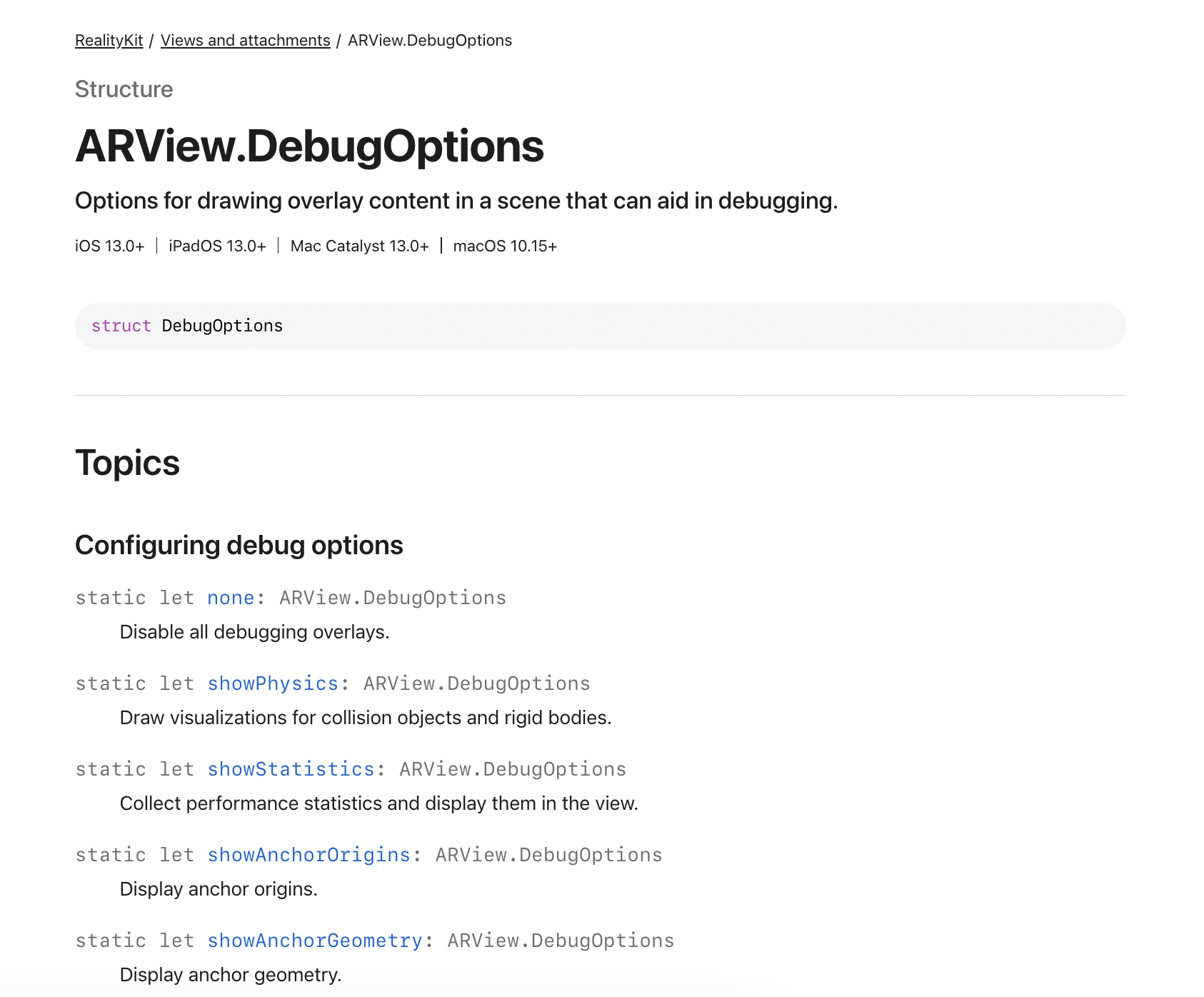 arView.debugOptions = [.showFeaturePoints,.showSceneUnderstanding,.showWorldOrigin]