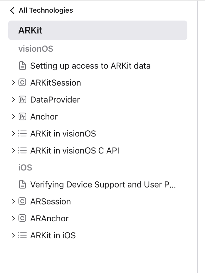 visionOS용 ARKitSession과 iOS용 ARSession에서 제공하는게 일단 다르다.