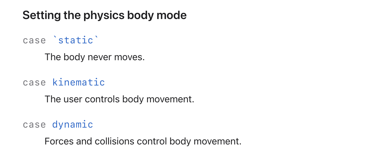 entity.physicsBody?.mode = .kinematic