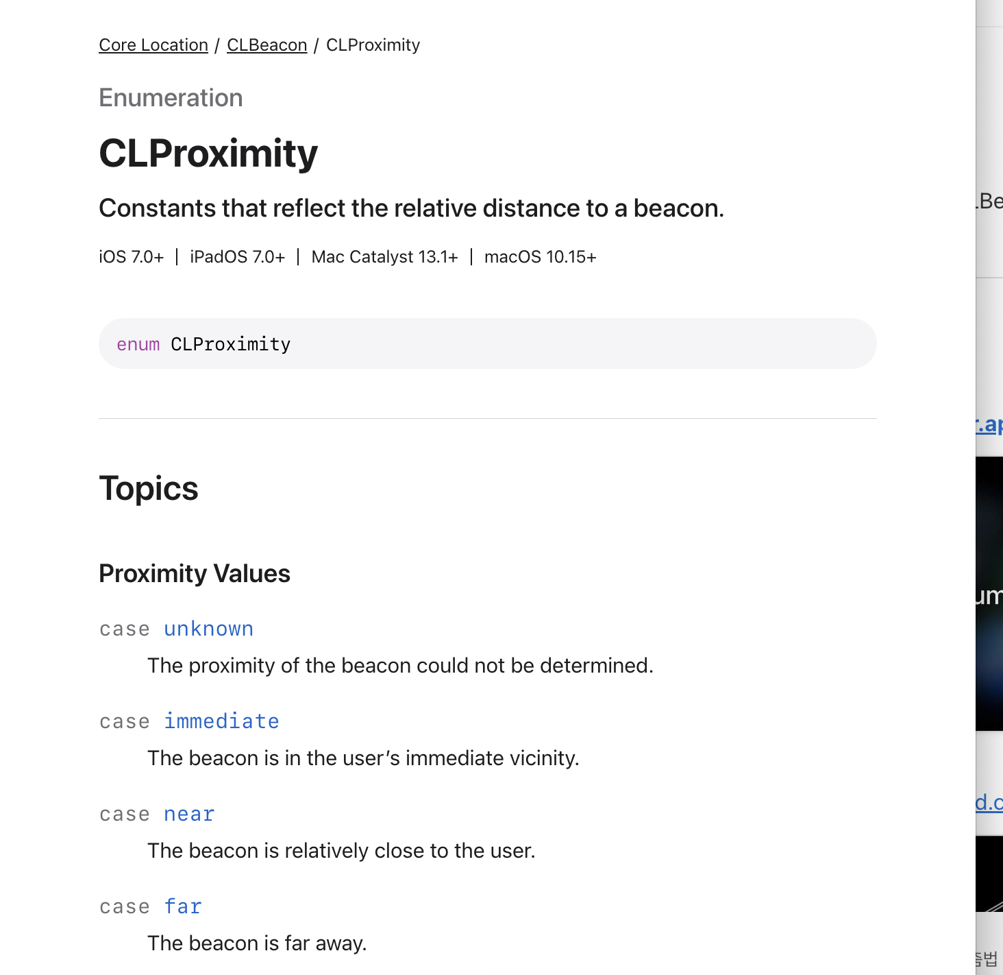 참고로 CLProximity에서는 거리에 따라 case를 구분하고 이벤트를 발생시킬때 조건으로 활용할 수 있다.