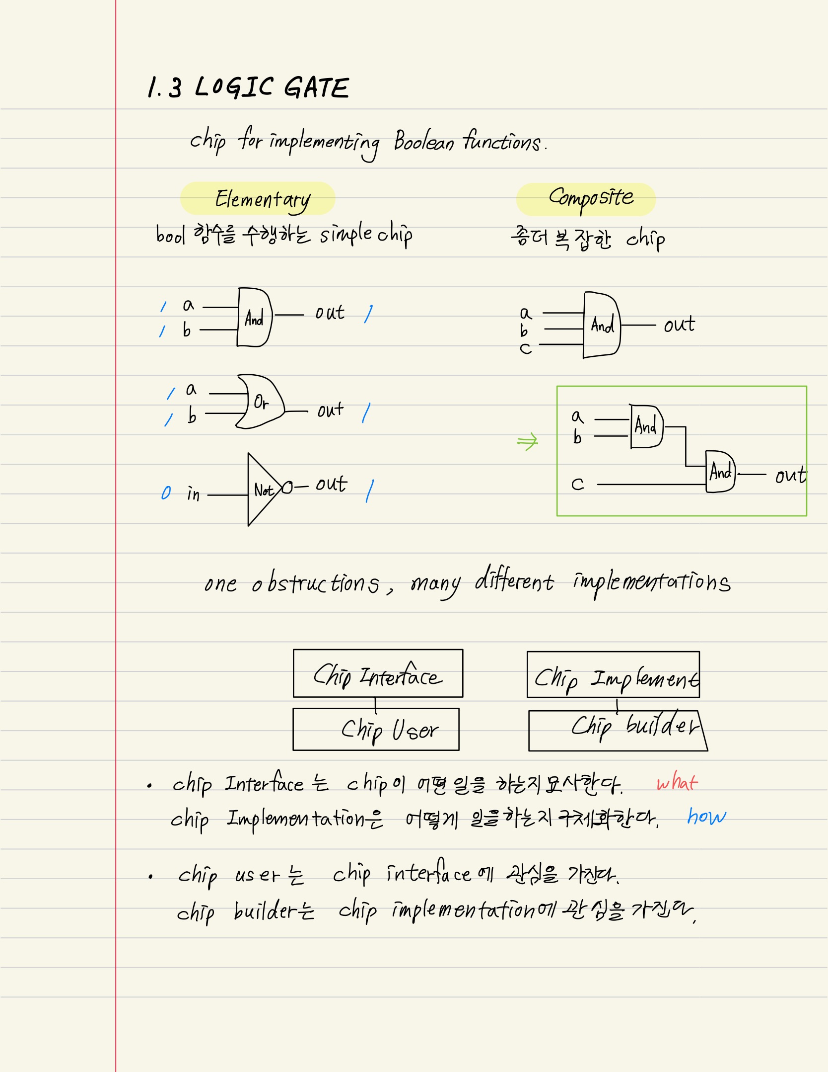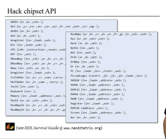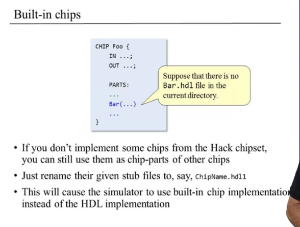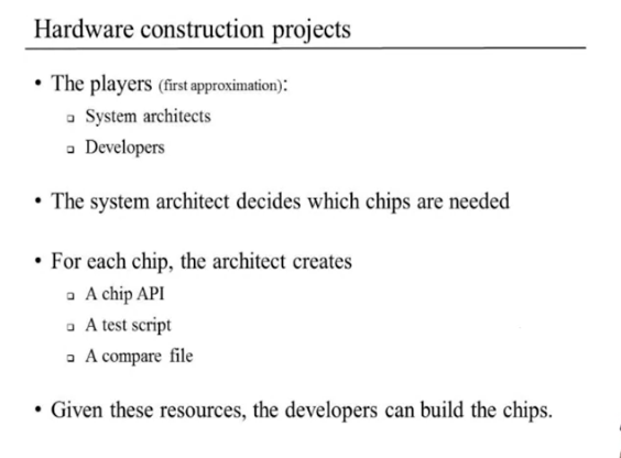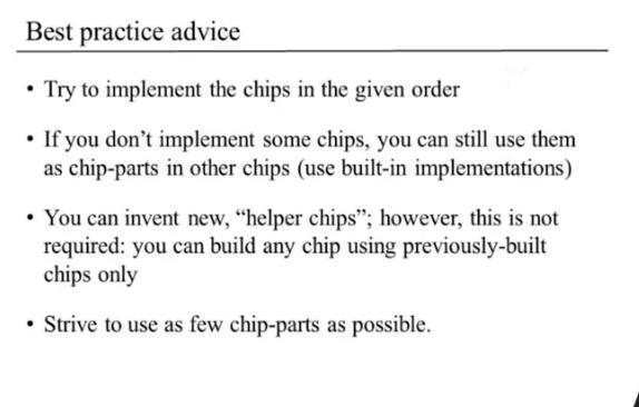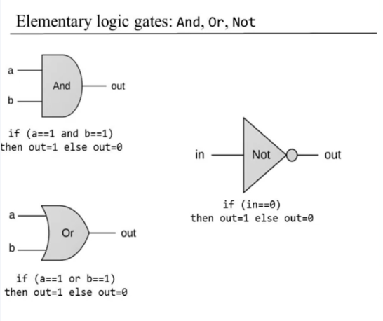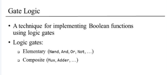 - Elementary: simple chip or elementary chip which is designed to deliver a well-defined functionality.(Nand같은 것) bool연산을 수행하는 단순한 칩이라고 보면 된다.