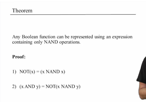 Integer functions not every function and integer numbers can represented just by arithmetic operation. Yet, because of the finite world that we're living in, the Boolean algebra, ever Boolean function can just be repreesented with ANDs, ORs, and NOTs.And that is what exactly gives us the basic power to actually construct computers only with these possible gates, only with these possible operations, AND, OR< NOT.