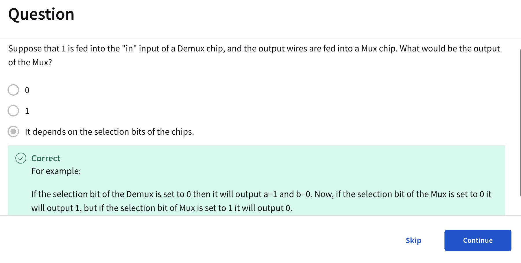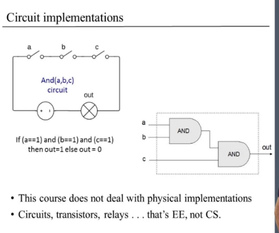 And later in this later in unit three we'll actually talk about how these abstract 0 and 1 signals directly are implemented as chips inside a computer.