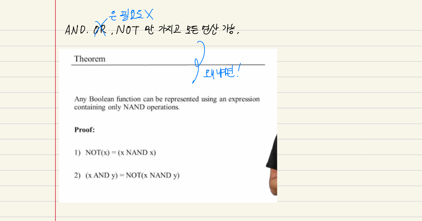 사실 OR도 필요 없다. ANDs and NOTs 만 가지고 construct any Boolean function을 할 수 있다.