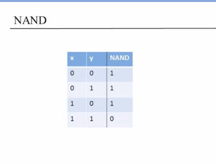 However, it turns out that NAND gates are very popular in physical implementations of hardware systems. Because there are many integrated circuit technologies in which it is quite cheap or relatively cheap to build NAND gates.