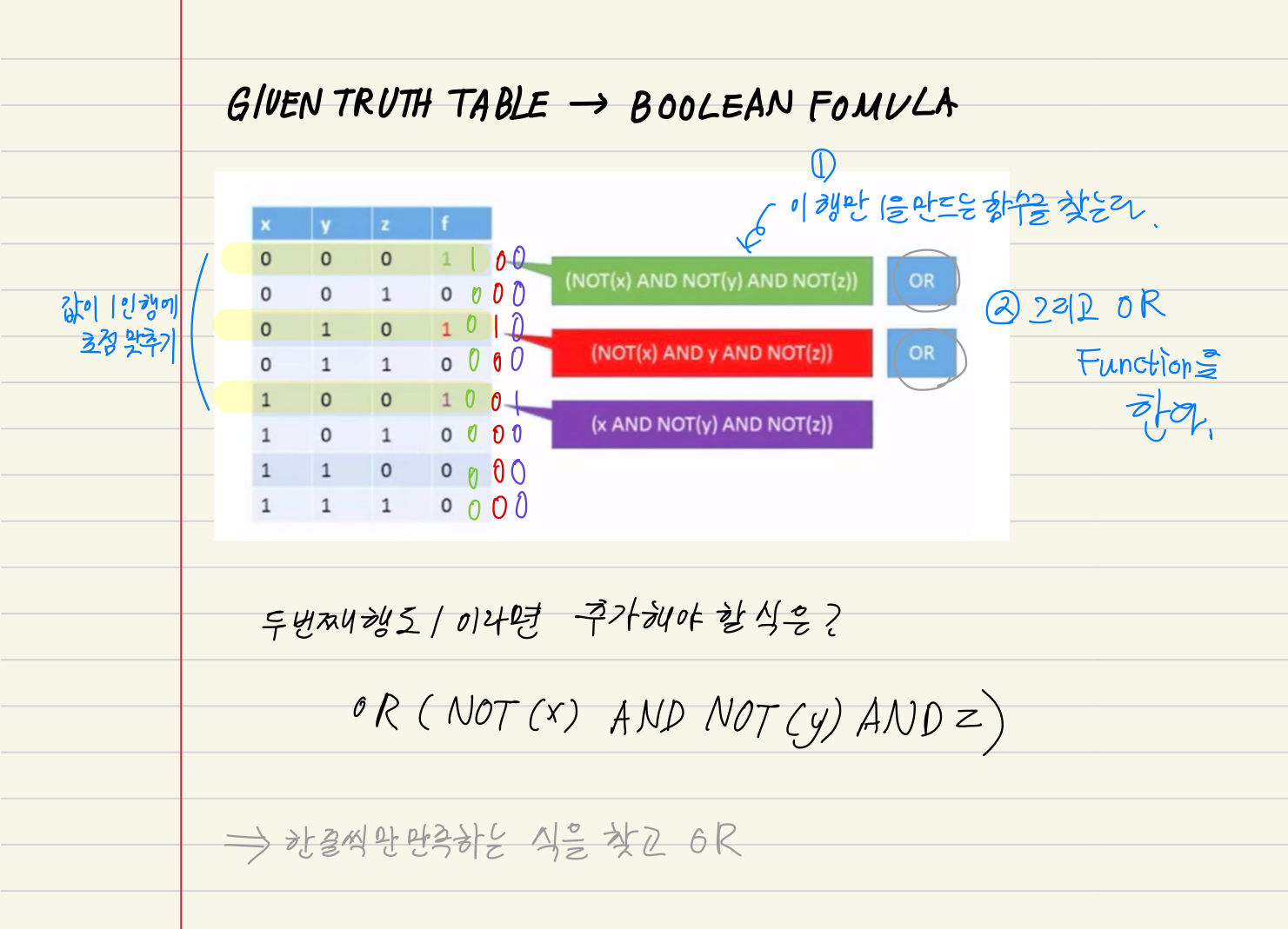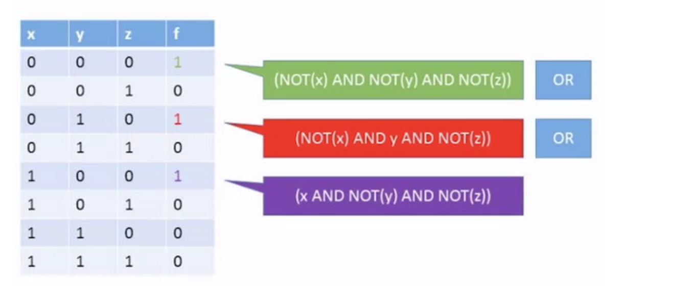 given truth table을 가지고, come up with a formula that computes the same boolean function.