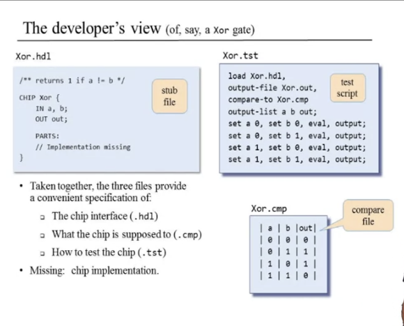 - get a stub file that contains the documentation of the chip that you have to build, along with its interface